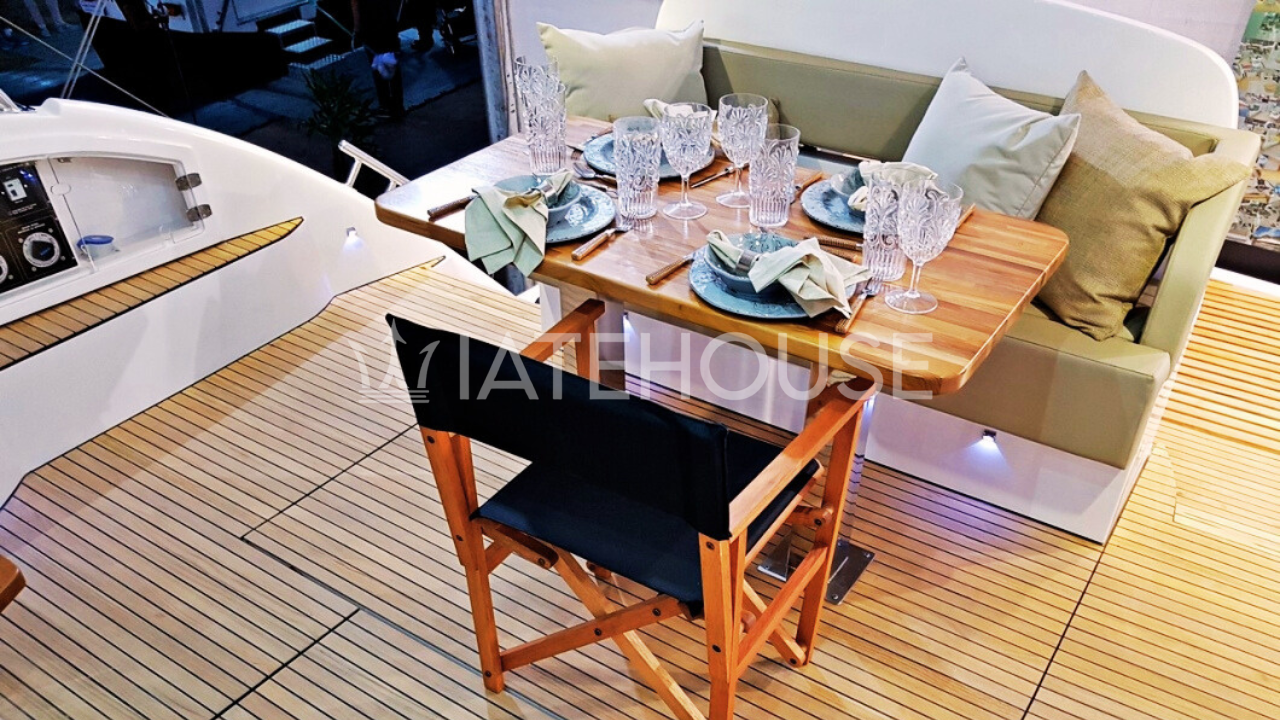 Acessórios e equipamentosÂncoraCarreta de EncalheChurrasqueiraDefensasFarol de BuscaGeradorLançador de ÂncoraRádio VHFTapeteVaranda de PopaWC Elétrico